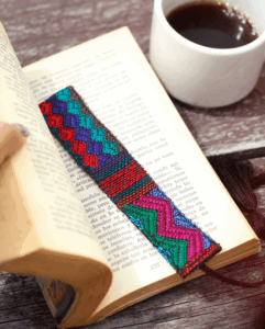 What a lovely, hand-embroidered upgrade from the usual bookstore paper bookmark. Every product on that site (there are two more bookmark designs) is made by a Guatemalan artisan woman working to support her family.
