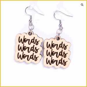 Continuing with handmade earrings, these Hamlet-inspired wood earrings are engraved 1/4-inch-thick maple plywood dangling from stainless steel wires.